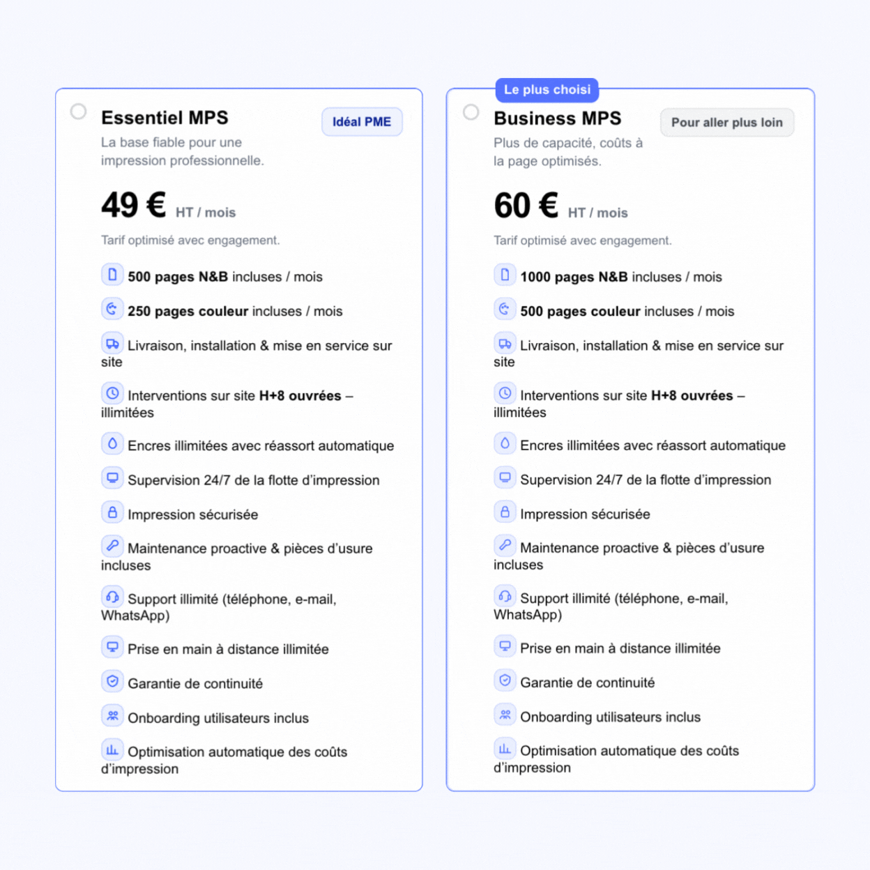 Coût à la page clair, maintenance incluse.